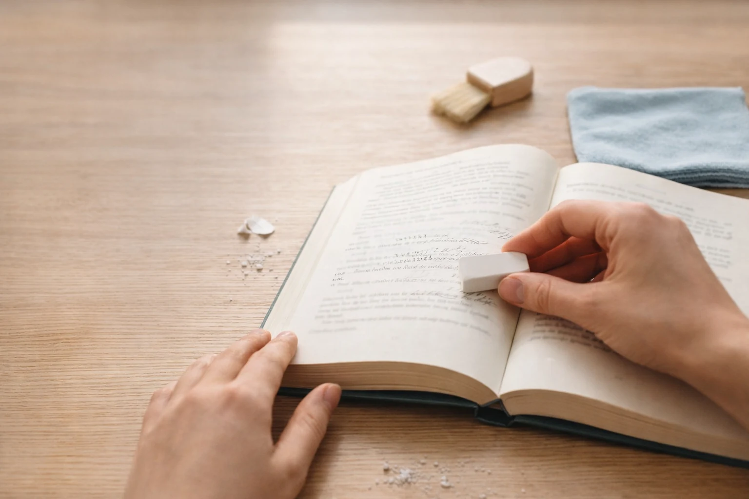 Elk boek dat bij ons binnenkomt, ondergaat een grondige controle en reiniging. We verwijderen stickers, gummen potloodnotities uit, en bedekken ongewenste aantekeningen — alles zodat u het boek in de best mogelijke staat ontvangt.